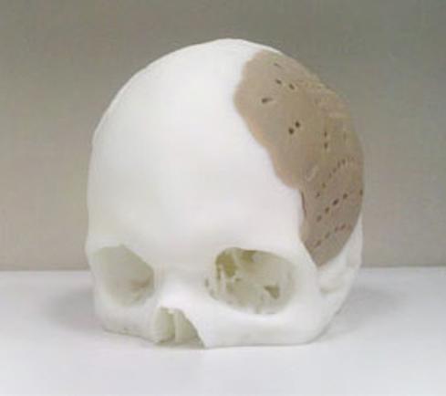 如果病患需要更換75%的頭骨,醫生使用Oxford Performance Materials提供的3D列印人工頭骨,該植入物是由高性能聚合物以CAD檔案一層層建造而成,並能夠塑形以符合個人的骨型。