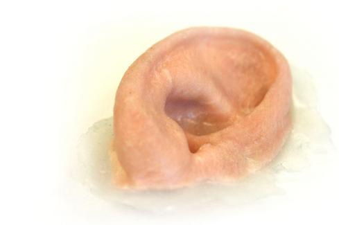 “大部分的助聽器都是經由3D列印製造的”,至少1位業界業務主管如此宣稱,此可以節省賣方的時間及金錢,並提供消費者更匹配更好的產品。視聽檢查師掃瞄病患的耳朵,並建立高達150,000個參考點,再將掃瞄檔送至技術人員處建立模型,然後製造商以樹脂印出外殼,並裝入必要的電子零件。研究人員也開始列印耳朵,康乃爾大學的生物工程師及醫師利用3D列印及得自活細胞的可射出膠體,製造可以生長軟骨的柔韌耳朵。英國諮詢機構Fripp Design & Research使用攝影測量法建立可編輯的CAD模型,然後交叉參考電腦斷層(CT)掃瞄及核磁共振(MRI)掃瞄的數據,建造客製化的耳朵或鼻子,如果以後要更換新品,再列印即可。