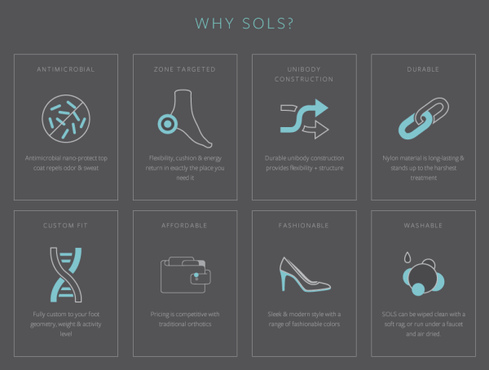 目前3D列印對腳的應用不是義肢或植入物,而是一些其他產品,例如Sols以3D列印客製化的鞋墊。消費者使用智慧型手機APP掃瞄其腳部,並上傳至該公司的資料庫,該公司將其轉為消費者腳型的3D模型,並依消費者選擇的顏色,印出客製化的鞋墊。該尼龍鞋墊有抗菌塗層保護以降低異味。該公司表示該產品的價格相當有競爭力。